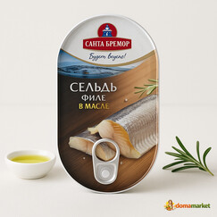 Сельдь филе в масле от Санта Бремор — источник белка и омега-3, идеальна для закусок и салатов.