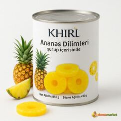 Консервированные ананасы в сиропе, 850 г. Идеальны для десертов и салатов, содержат 58% ананасов.