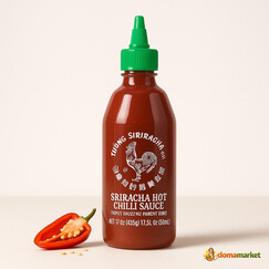 Острый соус Срирача с 57% чили, идеально подходит для мясных и овощных блюд.
