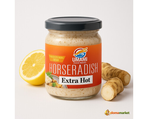 Хрен острый от Umami — это уникальный соус, который добавит пикантности вашим блюдам. Приготовленный по традиционным рецептам, он сочетает в себе натуральные ингредиенты, включая корень хрена, уксус и специи. Этот соус не только придаёт блюдам насыщенный вкус, но и обладает полезными свойствами, такими как улучшение пищеварения и поддержка иммунной системы. Хрен известен своими антиоксидантными свойствами и способен улучшать обмен веществ. Продукт упакован в удобную стеклянную банку, что обеспечивает его сохранность и долгий срок хранения. Рекомендуется использовать в качестве добавки к мясным и рыбным блюдам, а также в салатах и закусках. Попробуйте добавить его в ваши любимые рецепты и насладитесь насыщенным вкусом!