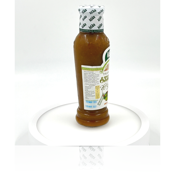 Соус ткемали от бренда Kula — это традиционный грузинский продукт, который идеально подходит для подачи к мясным блюдам и закускам. Он изготовлен из свежих слив, что придаёт ему уникальный вкус и аромат. Соус содержит натуральные ингредиенты, такие как специи и зелень, что делает его не только вкусным, но и полезным. Ткемали богат витаминами и антиоксидантами, что способствует укреплению иммунной системы и улучшению пищеварения. Этот соус станет отличным дополнением к вашим любимым блюдам, добавляя им пикантности и оригинальности. Применяйте его в качестве маринада или заправки для салатов, чтобы раскрыть новые грани вкуса. Рекомендуется хранить в сухом, прохладном месте, после открытия — в холодильнике.
